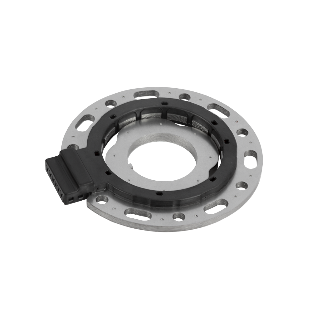 Variable reluctance resolver is an electromagnetic sensor consisting of a stator and a rotor. When the AC magnetic field generated by the excitation winding is periodically stable, the rotor rotation causes the air gap magnetic field between the stator and the rotor to change, which is feedback to the secondary winding inductance to change, thereby inducing the electromotive force to change, forming a voltage signal, which is converted by A/D to Digital signal (i.e. angle signal). -